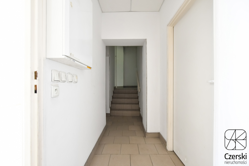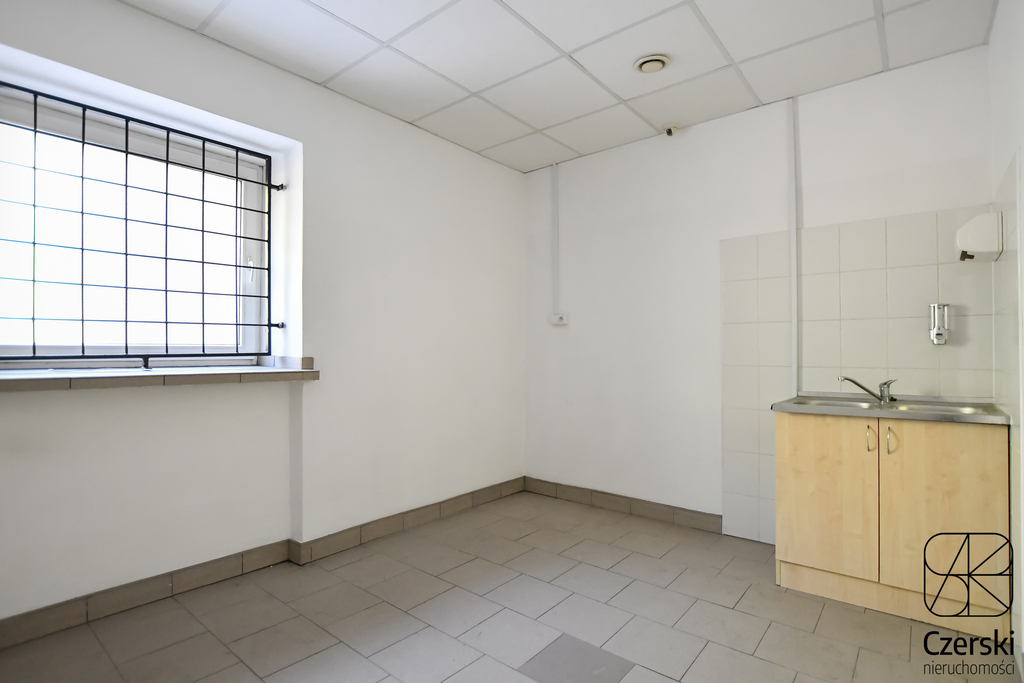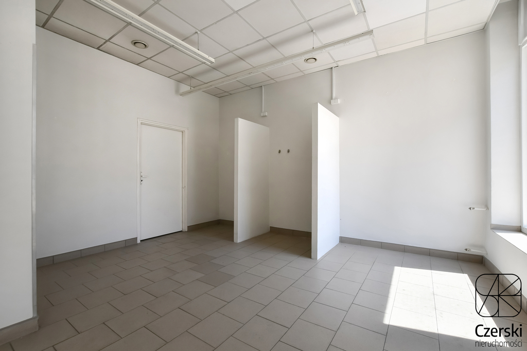 The approximately 100 m² space is located on the ground floor of the building, with direct access from Mogilska Street and alternative access from the courtyard (entrance from the stairwell). The space has been pre-divided with lightweight partitions, allowing for extensive arrangement options – both open-plan and office layouts.