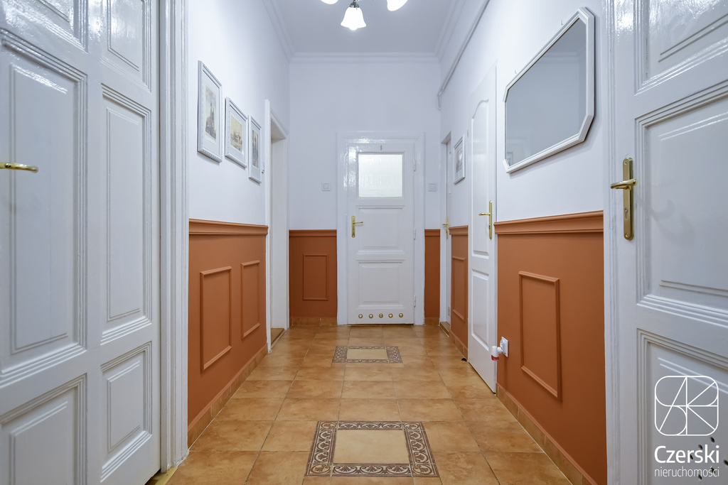 Apartament jest duży, jasny i niezwykle przestronny. Wnętrze zostało zaprojektowane z myślą o komforcie i estetyce, a całość przeszła generalny remont i została wykończona w wysokim standardzie, z dbałością o detale oraz jakość zastosowanych materiałów. Wysokie sufity oraz duże okna nadają wnętrzu wyjątkowego charakteru i potęgują poczucie przestrzeni.